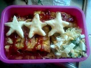 ナゴヤドームで買った、ドアラの弁当箱につめてさあ出発!