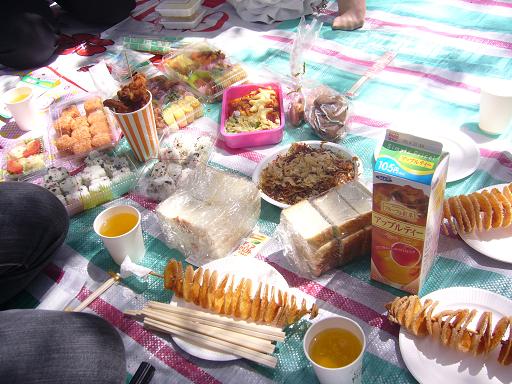 姓名判断は諦めてお留守番班の皆さんのところへ戻り、レジャーシートを敷いてしばらくすると屋台買い出し班も戻ってきて、いそいそとお弁当の準備。